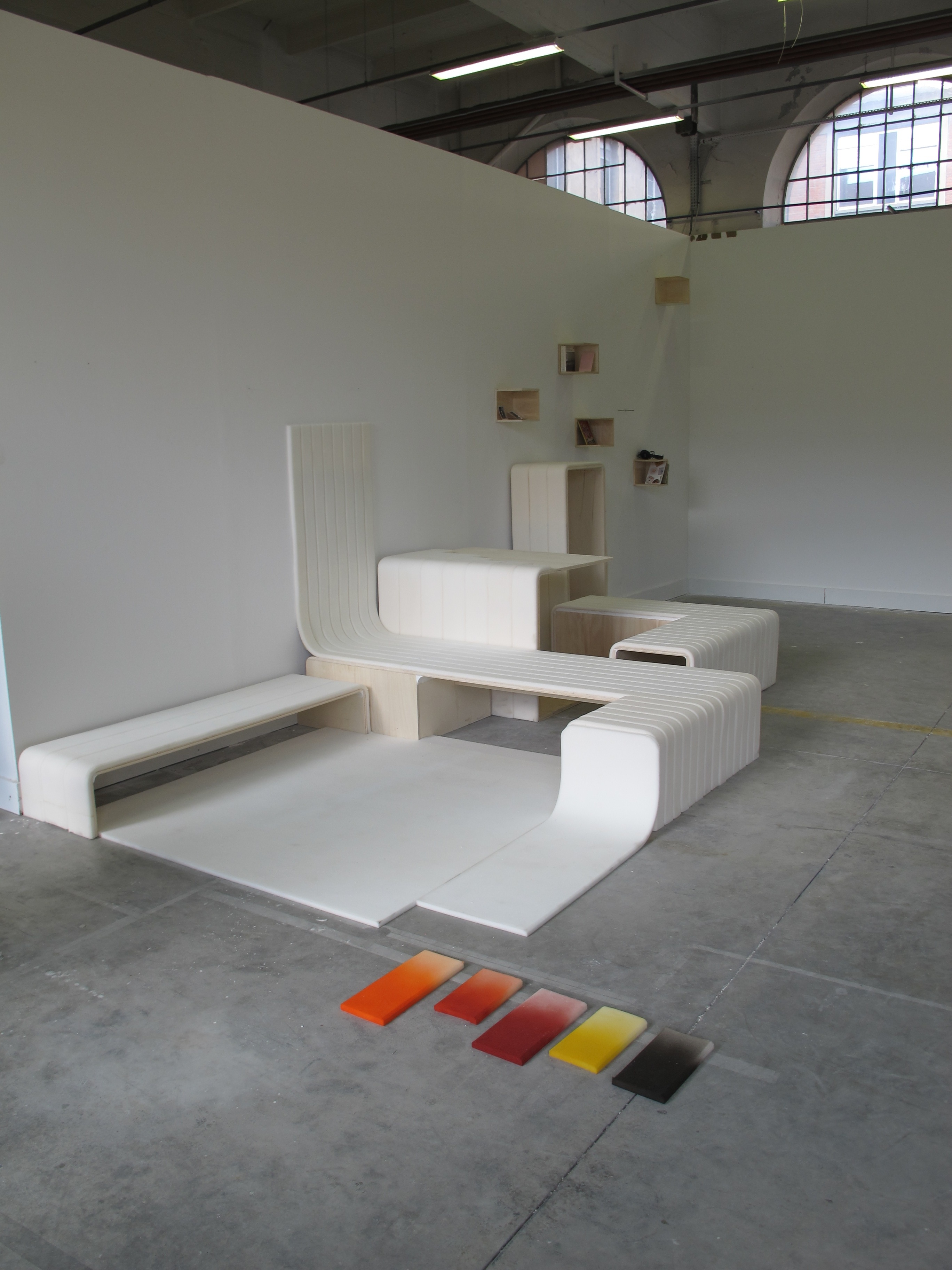 Le projet proposé par la ville de Firminy était d'imaginer le mobilier futur d'un appartement du Corbusier. Sur la base de ses préceptes et de l'écriture de scénarios d'utilisations futures, nous avons travaillé sur les meubles du salon.